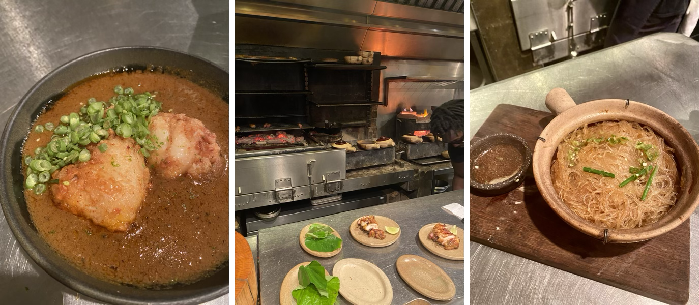 ce n’est pas du tout une nouveauté, mais un de ces restaurants qui rappellent pourquoi londres est une capitale culinaire ultra excitante. la cuisine, d’inspiration thaï principalement mais avec un sourcing ultra local, est au charbon, ce qui donne aux plats ce goût légèrement fumé et profond. quand j’y suis allée il y a 4 ans, les crab noodles (photo de droite) étaient rentrées dans mon panthéon de chocs culinaires. les nouilles sont cuites dans un pot de terre cuite, et accompagnées de ventre de cochon tamworth (une race british: des cochons bruns-rouges tout poilus) et de crabe brun. relevées juste ce qu’il faut, avec une chaleur qui monte lentement. la cuisson est millimétrée, et l’ensemble dégage une énergie brute mais précise. seul bémol, pour s’y attabler (au comptoir idéalement) il faut accepter de faire la queue, ou diner à 18h (“when in rome”…).