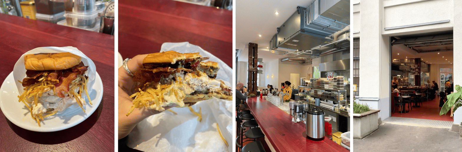 j’y suis allée en août dernier, sur le chemin d’un festival dans la forêt polonaise. j’avais 24h pour quadriller berlin à pied. après une bonne vingtaine de km, je suis arrivée à l’adresse indiquée. j’ai tourné en rond pendant une bonne dizaine de minutes et fini par dénicher ari’s, planqué dans une cour d’immeuble. situé dans un ancien garage, l’endroit ressemble un diner à l’américaine, mais passé au filtre péruvien (nationalité de sa fondatrice). j’y ai gouté, un soft bun moelleux qui accueille un poulet ultra juteux, des string fries fines et croustillantes, du bacon bien grillé et surtout une sauce secrète (doublement validé par cette personne au bon goût du nom de valentin joliff). ça m’a fait penser au concept de sandwich américain (boeuf cru haché + frites dans une baguette) belge (douteux donc, à priori), dont on m’a parlé récemment. il se décline version anglaise aussi (ça s’appelle chip butty - voici un extrait où le GOAT anthony bourdain en déguste une version avec le mythique chef marco pierre white… je peux me dévouer à goûter par professionnalisme mais franchement ça a l’air affreux). bref j’ai digréssé. j’ai adoré ari’s, allez-y si vous libellulez à berlin. c’est un lieu très unique en son genre, pas un copié collé des autres, c’est toujours sympa…
